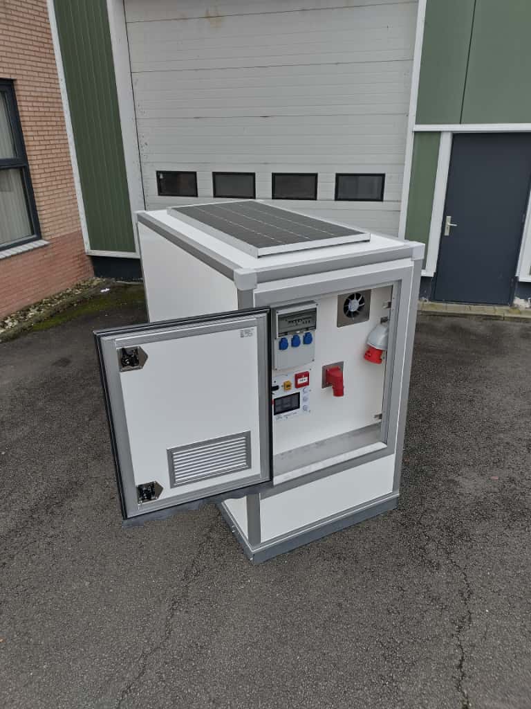 The Battery box is a compact, emission-free energy storage on skid and, like the Battery Trailer, provides not only energy but also water for construction sites and events.